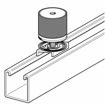 Elemento montado em perfil 41 com anilha 8/40 e porca rápida M8. Este elemento destina-se a cargas de pressão. Deve evitar-se a instalação com cargas de tensão dominantes. Para estes casos excecionais, a carga de pressão tem de ser reduzida a 1/3.