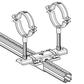 Conjunto deslizante bidirecional para consolas simples e duplas guiadas no Perfil siMetrix PRO 46. As opções de ligação variam consoante a carga, utilizando a rosca tripla 3G: M10, M16 e 1/2".
