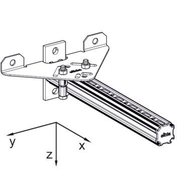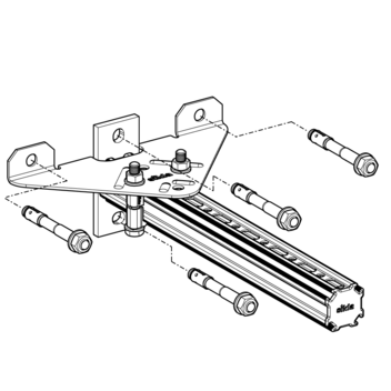 O Suporte Transversal é montado na Consola utilizando os elementos de ligação incluídos. O suporte deve ser pressionado contra a estrutura antes de apertar os parafusos. Para cargas superiores, o Suporte Transversal pode ser fixado adicionalmente à estrutura com duas ancoragens. As ancoragens devem ser encomendadas separadamente e escolhidas de acordo com o tipo de substrato.
